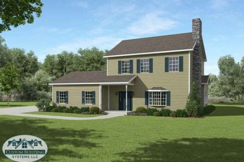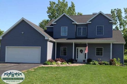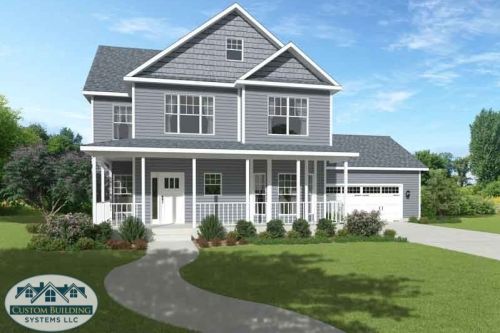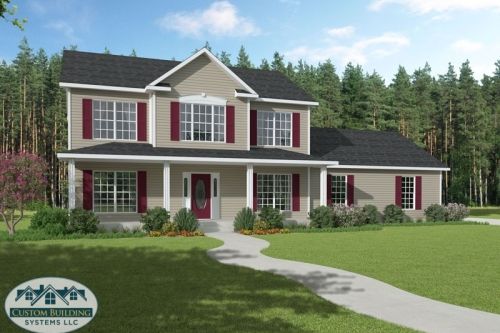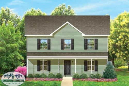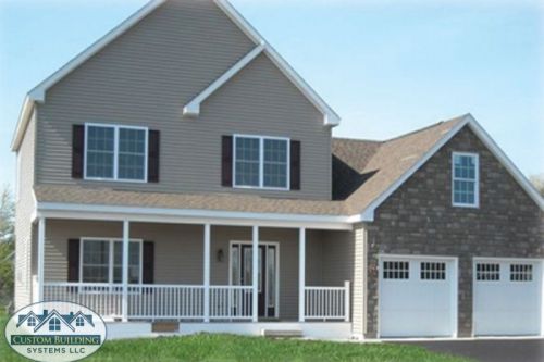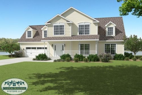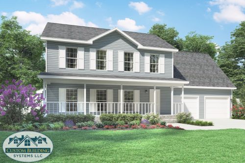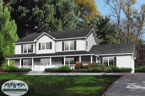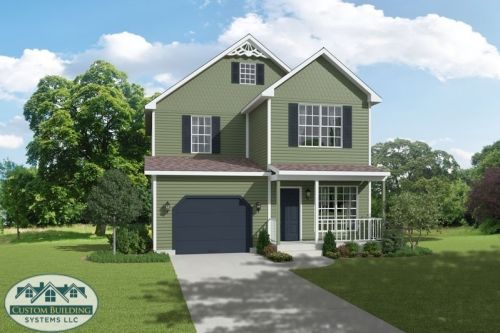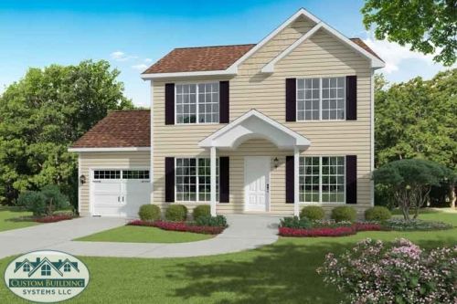 3 bedroom, 2 1/2 bathroom, two story modular home with a large kitchen, dining room, and optional 540 square foot garage.