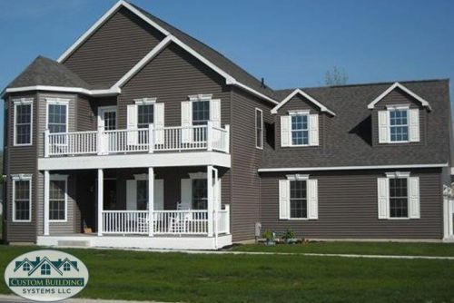 A 3 bedroom 2 1/2 bath two story modular with a Victorian touch. This floor plan has a living room and a family room, attached garage, large bedrooms and master suite.